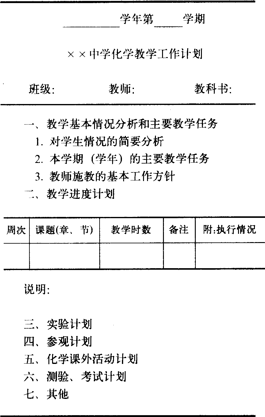 | 字词 | 化学教学工作计划 | ||||||||||||