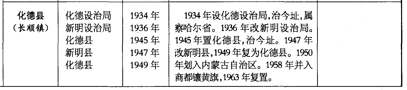 化德县(长顺镇)化德设治局新明设治局化德县新明县化德县1934年1936年1945年1947年1949年1934年设化德设治局,治今址,属察哈尔省。1936年改新明设治局。1945年置化德县,治今址。1947年改新明县,1949年复为化德县。1950年划入内蒙古自治区。1958年并入商都镶黄旗,1963年复置。