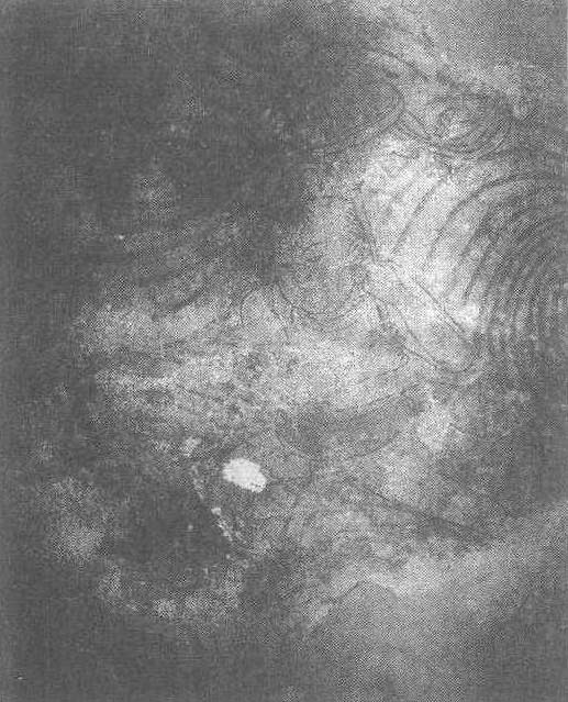 新疆维吾尔自治区吐鲁番市伯孜克里克石窟第14窟壁画,为西方净土中的化生童子。梳童子发,面庞圆润,五官灵秀。上身赤裸,腰缠红巾,手持红色华盖,在功德水中戏嘻,搅出道道涟漪。作者用笔简洁概括,笔触雄劲洒脱,适度的弧线即完美地表现儿童稚嫩的脸蛋和丰腴柔软的肌肤。眼、鼻、口的刻画颇为传神,稚气和聪慧溢于言表,是世俗生活中顽童的再现。华盖和红巾的鲜艳色彩为化生童子像增色不少,是石窟壁画中的精品。
