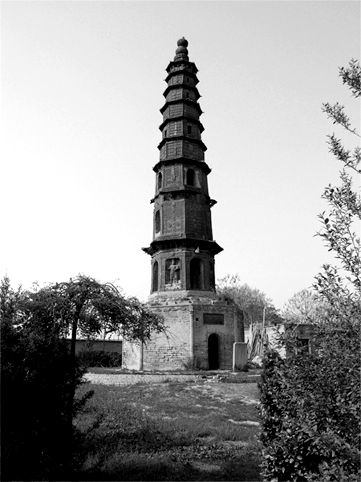 | 释义 | 北杜千佛铁塔 北杜千佛铁塔beidu qianfo tieta明代。位于咸阳市渭城区北杜镇北杜西村。八角九层楼阁式铁塔。又称福昌寺塔。福昌寺建于金大定年间(1161~1173),今已不存。塔始建于明万历三十三年(1605),竣工于三十八年(1610)。通高21.5米,底边长2.42米。塔基砖砌,八角形,高3.08米,正南辟券门,内设砖阶梯。塔身外铁内砖,底层南、东、西三面辟圆拱门,有门楣、框、槛(原装铁门已毁佚);二层以上辟门或方窗,逐层相错(四层以上门窗内面皆以砖砌实),第九层全部铁铸。塔身各层外壁铸铁佛多尊及花草、鸟兽等;转角铸金刚力士承托塔檐,檐下铸仿木构斗拱,檐面铸瓦垅、椽头等。宝瓶式塔刹,稍倾斜。塔内中空,一至三层设梯,三层以上为“壁内折上式”,可登临顶层。塔基券门上方嵌楷书“千佛塔”三字铁匾,长1.02米,宽0.51米。落款“大明万历三十八岁次庚戌吉日立”,铸塔人为“南书房行走太监杜茂”。当地民谚曰:“千佛塔,九层子,八棱子,二十四个窗门子”,所言确凿。福昌寺大殿1962年拆毁,殿内明代铸造的高2.2米铜佛像移存于咸阳博物馆。1956年公布为陕西省重点文物保护单位。