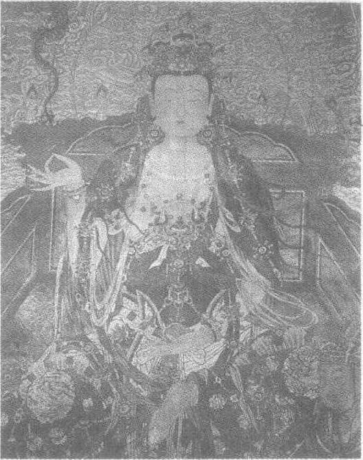 | 释义 | 十二圆觉菩萨像(普觉菩萨)壁画 十二圆觉菩萨像(普觉菩萨)壁画明。纵165厘米,横134厘米。四川省新津县观音寺毗卢殿右壁第一铺第二幅壁画。画工以工笔重彩技法和流畅的铁线描表现了菩萨的端庄宁静和慈祥善良。她的肌肤丰润,服饰精美,装饰繁多。设色凝重深沉,一些图案和饰品以沥粉贴金技法描绘,显得十分富丽。与此相配合,龛座和背光上的图案也绘制得一丝不苟。沥粉贴金见“帝释梵天图(帝释天)壁画”条目。