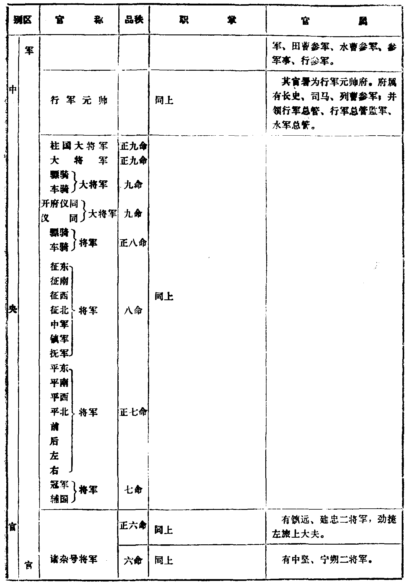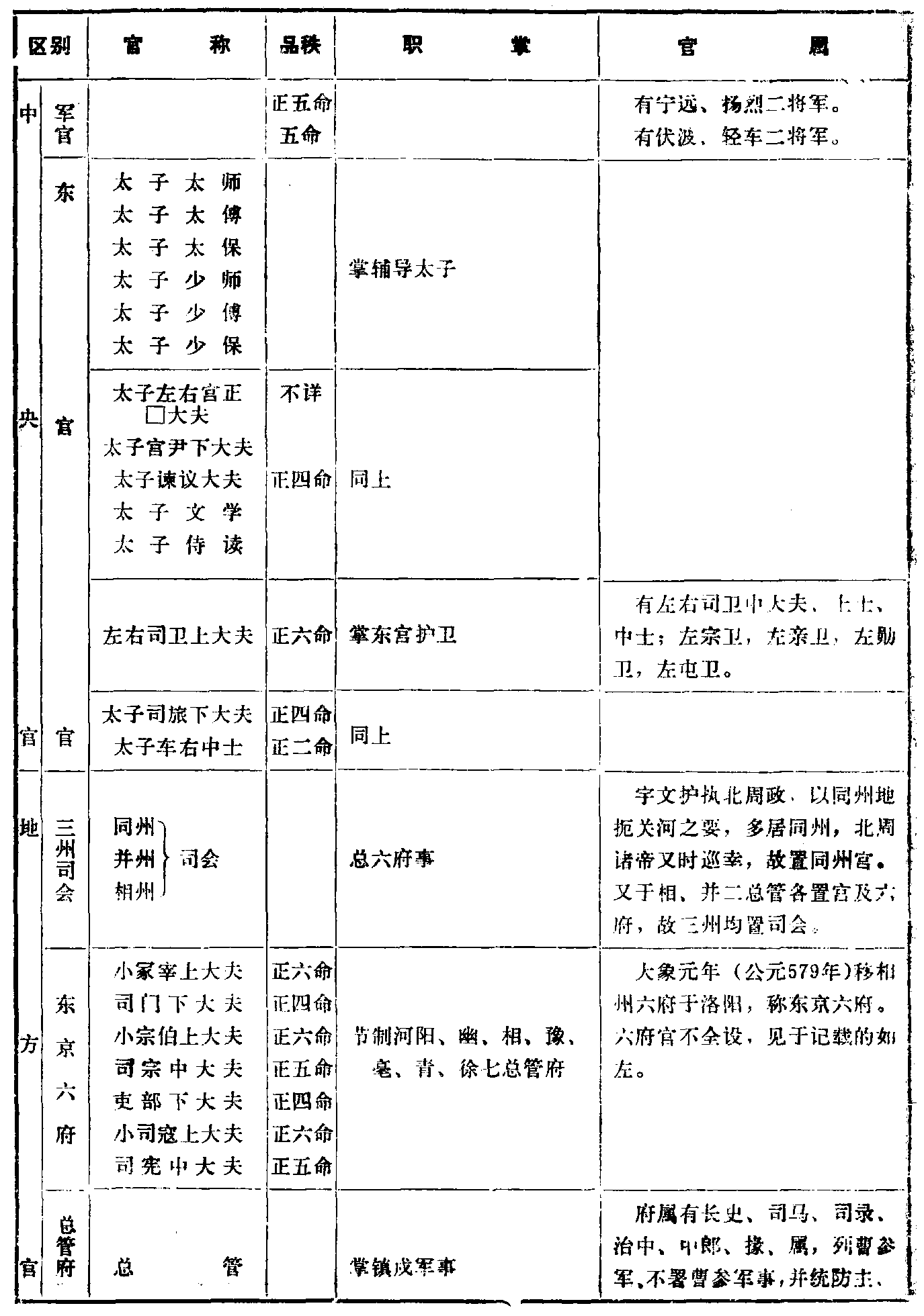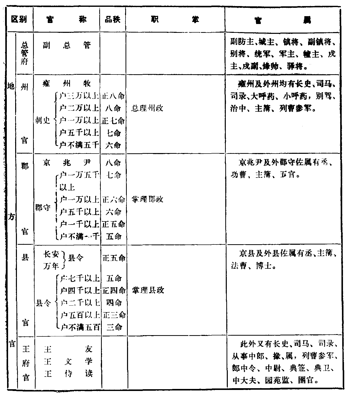 中 央 官 | 地 官 府 | 大司徒卿 小司徒上大夫 | 正七命 正六命 | 掌管教育及土地、赋役、 产殖等事 为大司徒卿的副职 | 有地官府都上士。 |