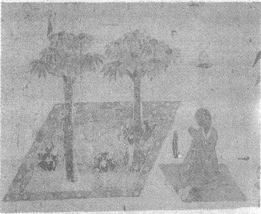 | 释义 | 十六观之一(宝树观)壁画 十六观之一(宝树观)壁画初唐。纵40厘米,横35厘米。甘肃省敦煌县莫高窟第431窟西壁南侧。图中印度皇后韦提希身着交领大袖裙襦,头束高髻,为汉族贵妇的打扮。她双手合十,虔诚地跪在地毯上观望前面的宝树。宝树枝叶、花果光华分明,皇后专注观看即能排出杂念。宝树下有盛开和含苞待放的莲花。