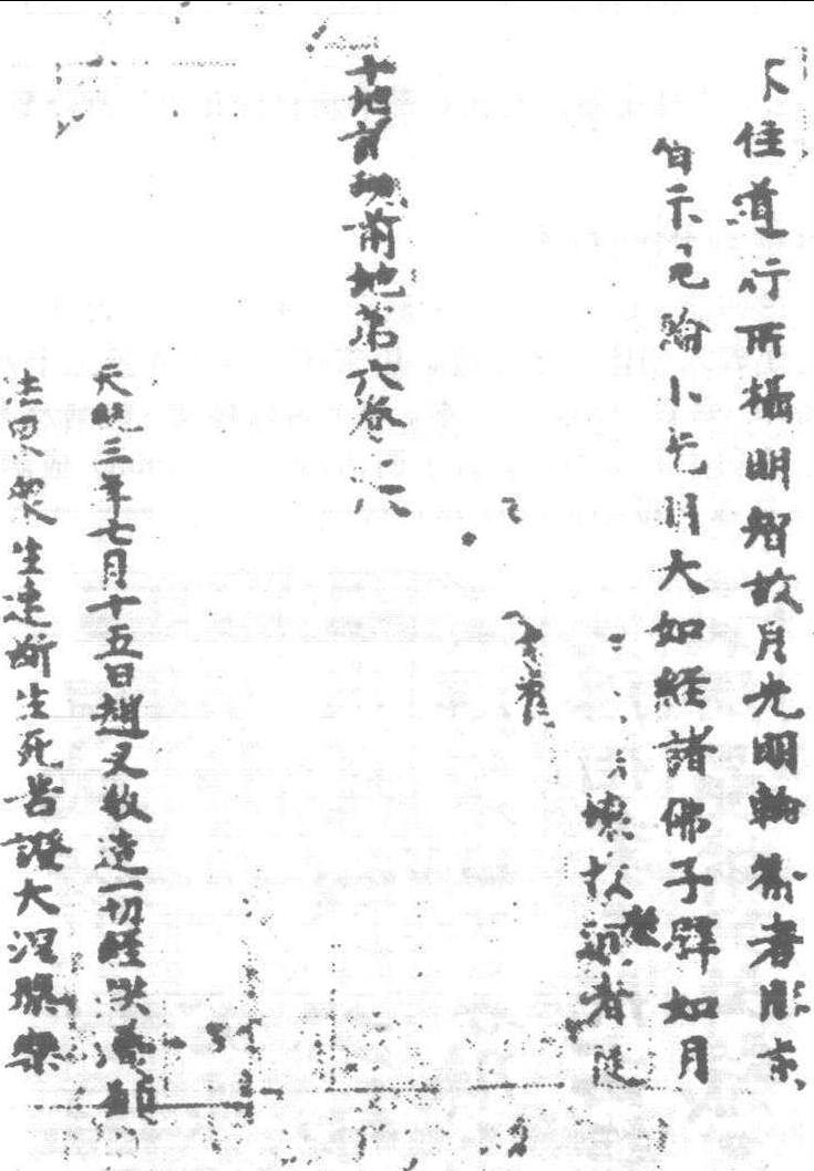 墨迹本。北齊·天統三年 (567)書。此係證書,文曰:“天統三年七月十五日,趙叉敬造 ‘一切經’ 供養。原法界衆生,速斷生死苦,證大涅槃樂”。是本書法屬佛弟子每用之 “寫經體”,又近隋唐風度。