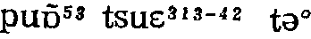 半桩子ban4zuang1zi3(名)同*半截子,但流行区域较窄:队伍很大,足有百十来个人,但大部分是~细娃娃。(潮683) 也说半桩子人。 半桩子一1461①名十六七岁的小伙子;半大小子。⑴胶辽官话。山东牟平〖 〗。~小子売郎猪(比喻少年能吃)。山东长岛〖 〗。⑵晋语。山西忻州〖 〗。~小子吃塌穷老子父亲。⑶江淮官话。江苏盐城〖 〗。~,饭缸子。⑷西南官话。四川成都〖 〗。队伍很大,足有百十来个人,但大部分是~细娃娃。克非《春潮急》下第三五章:「虽全是女的,但个个都十分精干,不同于林方成这边的~娃娃。」②名指不大不小的物体。晋语。山西忻州〖 〗。   |
