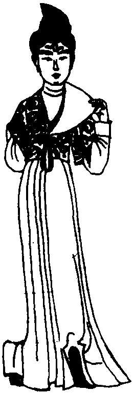 半臂 半臂 半臂又称“䘿掖”,它起源于秦代,是一种与长衫相类似的短袖衫。半臂这种服装,到了汉代极为盛行,其款式多为直领对襟,袖口宽松平直,袖长是长袖衣的一半,并因此而得名“半袖”。它的衣领与袖口都另加以缀绣边缘,装饰效果很好,它的下摆长度有至腰部、有至膝下、也有长至脚面的不等。早在秦汉时期半臂就曾作为“法服”和“朝服”穿用。半臂这种装束到了魏晋南北朝时期逐渐减少,以至不常见到,直到隋末唐初穿用半臂的妇女又渐渐增多起来。半臂的重新兴起是在隋唐宫中,但很快便传入民间,并成为一种穿用普遍的常服。制作半臂的面料通常为织锦,《新唐书·地理志》中记载扬州上贡的物品里有“半臂锦”,这种织锦就是专门制作半臂用的材料。还有一种称为“蛮锦”的材料,也是制作半臂很好的面料,这可以从新疆吐鲁番阿斯塔那唐墓出土的泥头木身俑上得到证实。还有陕西乾县唐永泰公主墓的甬道及墓室壁画中绘有许多穿着半臂的少妇形象,另外在石椁的四周也雕刻有穿着襦裙及半臂的宫女形象。