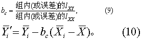 (7)用式(8)中分子、分母两均方的自由度查F界值表得P值,按所取检验水准作出推断结论。若修正均数间有差别,必要时再作两两比较。 (8)求各修正均数。先按式(9)计算公共回归系数bc,再按式(10)计算各修正均数 'i。