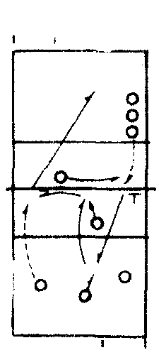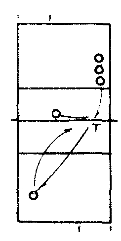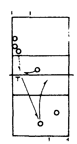| 释义 | 单人拦网的防守阵形 单人拦网的防守阵形当对方进攻时,由前排1人拦网,其余5人组织防守的阵形。防守战术形式之一。多在对方进攻威胁不大、变化不多或来不及组织双人拦网时采用。基本方法:对方由4号位进攻时,2号位队员拦网,3号位队员保护,4号位队员后撤,与后排3人组织防守。教学方法: