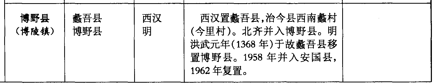 博野县(博陵镇)蠡吾县博野县西汉明西汉置蠡吾县,治今县西南蠡村(今里村)。北齐并入博野县。明洪武元年(1368年)于故蠡吾县移置博野县。1958年并入安国县,1962年复置。