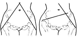 | 释义 | 卡普兰交点下移 卡普兰交点下移descent of Kaplan point骨外科体征之一。 病人仰卧位,两下肢伸直,将两侧髂前上棘与大转子各连成一条直线,即舍马克线(Schoemaker line),把此二线向腹壁延长,两线的交点即卡普兰交点。 正常人的卡普兰交点应在脐或脐上的正中线上,若在脐下,则为下移。 本征见于髋关节脱位、髋关节炎症或结核、髋关节肿瘤、股骨颈骨折、股骨头无菌性坏死以及严重的骨盆骨折。