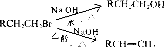 卤代烃的水解反应常伴随着消去反应的发生,水解产物与消去反应产物的比例和卤代烃的结构、溶剂的极性、反应温度等因素有关。如: