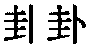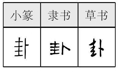 ɡuà形声,从卜,圭声,本义为古代卜筮所用的符号,用来占卜吉凶,引申为预测吉凶的器具或行为。 【辨析】 以“卦”作音符构成的形声字一般读ɡuà:褂。 卦 |