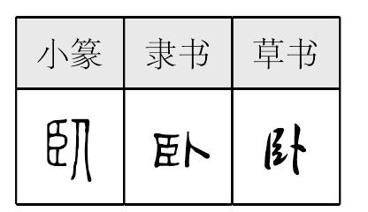 wò表意,小篆从人从臣,臣指伏服;隶定为“臥”;俗字作“卧”,部件人讹为卜。本义表示人伏身休息,引申为趴伏、躺下、睡觉、睡觉用的、卧铺(火车或长途汽车上供旅客睡觉的铺位)等。 【辨析】 卧/寝/眠/睡 见333页“寝”。 【构词】 卧倒(臥倒)∣卧室(臥室)∣仰卧(仰臥)卧 臥; 篆 隶wò【析形】会意字。古文字形从人,从臣(表示眼睛),表示眼睛闭合睡觉之意。 【释义】《说文》:“休也。”本义是靠着休息。引申指躺在床上,卧床。又表示倒伏或平放着。代指寝室,进而喻指隐居。[卧龙]喻隐居或尚未崭露头角的杰出人才。[安枕而卧]安安稳稳地睡眠。喻指无忧无虑。 【shape analysis】It is the associative character.In ancient character it is formed by 人(rén,human)and臣(chén,eye usually looking down),which means closing eyes and going to beasleep. 【original meaning】Leaning to have a rest. |