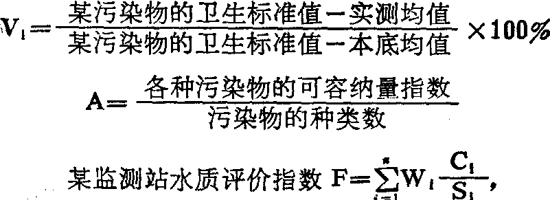 水源中某污染物的可容纳量指标 (V1)及水质污染指标(A)。