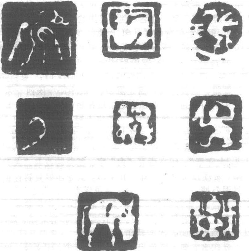 左私印·右官印 私印者,個人所用也。其材質、鈕式、印文等,無論何時皆不同於官印,無一定規制,使用自由。漢代印式千姿百態,屬印史之極盛期。六朝時代印不多。唐宋以降,朱文印暢行,印藝得以振興。私印除姓名外,亦有别號印、家世印、齋室印、收藏印等,名目繁多,姿態萬千,趣致濃鬱。本書【篆刻】項中有詳叙。 〔特殊印章〕 因時代、地域等不同,有數種特殊印行世: (1)傅國璽——秦始皇以藍田白玉作蟠螭鈕,鎸刻“受命於天,既壽永昌”八字,欲傅萬世,為繼位之證物。此係傳說,難定真偽。晉以降,國璽有數種文,但其傳承可疑,想必非真璽。宋鄧文寳所撰 《傳國璽譜》(《重校說郛》九七)有載。 (2)皇帝六璽——漢制皇帝六種印。據衛宏《漢舊儀》,帝持白玉、螭、虎鈕等六種印璽,以行封命、發兵、祭祀諸事,用武都所産紫色泥押印。原印無存,但所謂“皇帝信璽”之封泥,著録於 《封泥考略》,其原件藏於日本東京國立博物館。 (3)花押印——元代常用。蒙古人不熟漢文,以符號表示姓名諸意,多將漢字變形,用於長方代鈕中。 (4)蠻夷印——中國皇室對塞外諸民族所賜官印。大都首冠中央國號 (漢、魏、晉),繼刻地名、職名,一般不刻“印”、“章” 字。鈕式因地而異,西北民族為橐駝鈕,東南用蛇鈕。材質多為銅,亦用金銀或涂金。 (5)藥浪印——朝鮮藥浪出土印。藥浪係漢代郡治遺迹,民國五年(1916)以來陸續出土古印十數方,有玉印、銅印、木印諸類,洵為漢印研究之珍貴資料。 (6) 西夏印——西夏國 (1038——1227)官印。用西夏文篆書,為有輪廓之白文大印。印背以西夏文鑿款,别具風尚。 (7) 肖生印——刻有鳥獸、人物之印章。一曰 “肖像印”、“畫像印”。以古印觀之,漢代多兩面印,印之底部常施徽刻,押於泥土方顯圖像。 (8)帶鈎印——帶鈎柱下之刻印。印字刻於帶鈎里側留金上,為印之一種形式。帶鈎為嵌有金、銀、玉之精致裝飾品,印文概為粗刻,多采用古璽、秦漢印式樣。 〔印章之製作〕 古代印章多係金屬類,其製法有鑄造與錐鑿之别,而鑄造有撥蠟法、翻砂法。“撥蠟法”者,先用蠟造印模,以石膏樣泥土定型,使之乾燥,復經火熱,使蠟溶化流出,再注入銅液而凝成。“翻砂法”者,先作印模,用泥造型,乾燥剖開,取出印模,復合母型注入銅液。“錐鑿法”者,先作無字印型,復據陣中急需以维或刀鑿造。古銅印皆用此手段,而鑄造法為多,维鑿法較少。