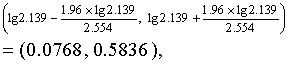 或按式(23)经连续性校正后,u=2.8345。查u界值表,均为P<0.01,按α=0.05水准拒绝H0,接受H1。 (3)求ψ0的95%可信区间。按式(24)得