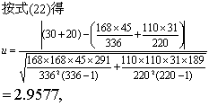 (2)推断Ψ是否为1。可用u检验。统计量u值的计算用式(15)或式(16)。