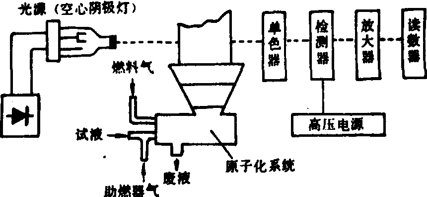 单光束原子吸收分光光度计示意图 特点及应用 ❶特效性极强。每个元素都有着几乎不可能与其他元素相混淆的特征吸收线,因而选择性好,干扰少。常可不经分离在同一溶液中测定多种组分,在分析复杂样品时容易得到可靠的分析数据,准确度高达0.1%~0.3%。 ❷灵敏度高。火焰原子吸收法对多数元素可达到10-2~10-3毫克/千克的检出限;石墨炉原子吸收法常可达到10-1~10-2微克/千克的检出限,绝对检出量为10-12~10-13克。 ❸易于达到高的分析精密度。 ❹分析速度快。如果不计处理试样的时间,纯原子吸收测定时间为数十秒(火焰法)至数分钟(石墨炉法)。原子吸收法的缺点是不能对多种元素进行同时测定,测定不同的元素需要更换不同的光源。 原子吸收法在农业化学分析中可用于土壤浸出液中土壤可溶性盐及交换性阳离子K+、Na+、Ca2+、Mg2+、有效性微量元素铁、锰、铜、锌及有害元素铅、镉、汞等的测定。可用于土壤全量成分的测定如铁、铝、钙、镁、钾、钠、锌、铜、锰等。不仅可大大简化土壤矿物全量分析手续,其分析精度均优于原化学分析方法。原子吸收法已广泛应用于动植物组织(包括植物叶片、果实、粮食、人发、人体组织及肉类等)金属元素及某些非金属元素的分析。血和尿中重金属元素的原子吸收分析也已成为临床医学中十分理想的测定方法。如植物试样经前处理试样中的待测元素进入溶液之后,不少常见元素均可经适当稀释溶液后直接用火焰原子吸收法测定,如钾、钠、钙、镁、锰、铜、锌、铁等。含量或灵敏度较低的元素则需经过萃取富集后测定,或用石墨炉原子吸收法测定,如镍、铅、镉、铬、钼、铍等元素。植物中的汞可用冷原子吸收法(测汞仪)测定。植物中的硒、砷可用氢化物发生法测定。 原子吸收分光光度法一种仪器分析法。每一种元素的电子不仅可以发射一系列的特征谱线,而且也可以吸收与发射线波长相同的特征谱线,当光源发射的某一特征波长的光通过原子蒸气时,原子中的外层电子将选择性地吸收其同种元素所发射的特征谱线,使入射光减弱。因此,根据所产生的原子蒸气对特征谱线的吸收作用,可进行定量分析。该方法具有选择性好,光谱干扰少,灵敏、准确、操作简便、快速,应用范围广等优点。 原子吸收分光光度法atomic absorption spectrophotometry方法是使光源辐射出的具有待测元素特征谱线的光通过试样蒸气,被蒸气中待测元素基态原子所吸收,再根据辐射谱线被减弱的程度,以测定待测元素含量。 原子吸收分光光度法 原子吸收分光光度法原子吸收分光光度法又称原子吸收光谱法,是测定无机元素的一种方法。各种元素于高温时均能发射出一定波长的光,形成原子光谱,而处于蒸汽状态的该元素也能吸收相同波长的光,吸收的强弱与元素的量有关,因此可用于定量测定。本法适用于金属元素的测定,有些非金属元素也可用本法测定。方法的灵敏度随元素有很大不同。所用仪器称原子吸收光度计,包括一个能辐射出待测元素的独特吸收波长的光源、使样品溶液雾化蒸发成气态原子的装置、分光系统及检测系统。测定是将样品溶液与标准品溶液进行比较而得出含量。本法灵敏度较高。 ☚ 比浊法及浊度法 发射光谱法 ☛ |