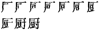 【提示】上面是厂,不要错写成广。豆,位于字或部件左边时,末笔的横改提。寸,末笔是侧点,不是提。 *厨〔侔 廚〕chú12画 厂部 (1) 做饭做菜的地方: ~房|下~。 (2) 以烹调为职业的人: 名~|川~。 厨廚㕑chú小篆作廚。从广(yǎn,表示房屋),尌(shù)声。厨房,做饭做菜的房子。因“厂”也表示房屋,后来又写作㕑。 这两个字形现在都规定为异体字。中古又作厨。现在以厨为规范字,前两字为异体字。 厨廚★异◎常★常◎异