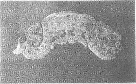 | 释义 | 双龙璜形玉佩 双龙璜形玉佩西汉早期。通长10.7厘米,中宽3厘米。1983年广东省广州市南越王赵昧墓出土。广东省广州市南越王墓博物馆藏。青玉,上有浸蚀痕。以并体双龙作璜形。玉龙透雕而成,身体弯曲作回首状。龙角短粗外扬,龙尾卷于身下,龙身饰阴线弧状纹。佩正中和龙颈之下各有一圆穿可系绳佩挂。