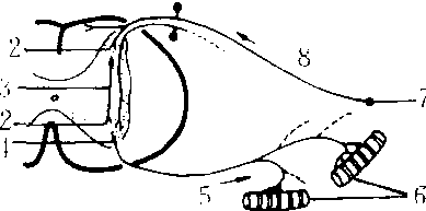 反射弧 1.传入神经元 2. 突触 3. 中间神经元 4. 传出神经元 5. 传出纤维 6. 效应器 7. 感受器 8. 传入纤维 反射弧 反射弧fanshehu实现反射活动的神经结构。由感受器、传入神经、神经中枢、传出神经、效应器五个部分组成。神经系统的活动是各种各样简单或复杂的反射活动,反射弧的结构也有简有繁。在最简单的反射弧中,传入神经元和传出神经元直接在中枢内接触,称为单突触反射,如膝反射。复杂的反射弧有许多中间神经元,神经元的连接方式主要有:(1)辐散式: 一个神经元的轴突可与许多不同神经元建立突触联系;(2)聚合式: 一个神经元的胞体与树突接受许多不同神经元的突触联系;(3)链锁状:神经元链状接替。由于中枢神经系统内神经元的结构与神经元间联系的复杂性,使各种反射活动能互相配合,互相协调而精确地进行。 ☚ 反射 传入神经元 ☛ 反射弧 反射弧fanshehu实现反射的神经结构。由感受器、传入神经、神经系统的中枢、传出神经、效应器五个基本部分组成。感受器是生物学的换能器,它把一种形式的能改变为另一种形式的能。传入通路有两条:特异传导通路,即各种感受器接受特定的刺激信息后,发放神经冲动,经过某种传导途径,传到大脑皮层的相应区域,因而产生某种感觉;非特异传导通路,即神经冲动通过网状结构弥散性地投射到大脑皮层的广泛区域。传出通路也有两条:锥体系和锥体外系。效应器发出相应的活动。实际上,任何一个比较复杂的反射活动都不是一次单向传导所能完成的,中枢神经系统通过反馈对效应器的活动进行调节,从这个意义上来讲,反射活动的机能结构应该是一种“环形”结构。 ☚ 植物性神经 刺激 ☛ 反射弧reflex arc系完成反射活动的结构。人和高级动物完成各种生理活动均由其完整的反射弧来实现的。一个完整的反射弧包括:感受器、传入神经、神经中枢、传出神经、效应器等5个环节组成,有的高级、复杂的反射活动,其中枢神经部分还可有高级部分控制。反射弧各个环节协调配合,缺一不可,才能实现其反射活动。 反射弧见“医药卫生”中的“反射弧”。 反射弧反射活动的结构基础。包括感受器、传入神经、神经中枢、传出神经和效应器。反射过程:一定刺激被一定的感受器所感受,并发生兴奋,以神经冲动的方式经传入神经传到中枢,由中枢分析与综合产生兴奋过程,由一定的传出神经传到效应器发生相应的活动。 反射弧 反射弧神经系在调节机体适应环境的活动中,对内、外环境的刺激作出适宜的反应,这种神经调节过程称为反射。反射活动的解剖学基础是反射弧。反射弧包括感受器→感觉神经纤维→中枢→运动神经纤维→效应器五个部分。反射的分类方法较多。依据反射弧在脊髓联系节段的多寡可分为节内反射、节间反射和超节反射。若按反射弧中所经过突触的多少,可分为单突触反射和双突触反射。为适应临床的应用,可分为浅反射、深反射、内脏反射和病理反射。例如角膜反射、髌腱反射、颈动脉窦反射和Babinski反射。依据反射的建立方式,可分为先天性的非条件反射和后天获得的条件反射,后者可使人类和高等动物更精确地适应环境的变化。 ☚ 神经纤维和神经 脊神经 ☛ 反射弧 反射弧reflex arc完成反射的结构基础。由感受器→传入神经→神经中枢→传出神经→效应器五个环节组成。其中任何一个环节受损或缺失则反射不能实现。 ☚ 反射 条件反射 ☛ 反射弧 反射弧reflex arc完成反射活动的结构基础,它由五个部分组成: (1)感受器,即接受刺激的起始处,有感受刺激、产生兴奋(神经冲动)的功能。(2)传入神经,即来自感受器的神经冲动经传入神经传向中枢。(3)中枢(脑和脊髓内的神经元),即接受传入神经传来的神经冲动,经过分析综合之后,将冲动传出中枢。(4)传出神经,即将中枢发出的神经冲动传给效应器。(5)效应器,即传递神经冲动,使肌肉和腺体产生反应的器官。反射弧的结构有简有繁,最简单的反射弧由两个神经元连结组成,如膝跳反射;复杂的反射弧可由多个神经元组成,在反射中涉及的中间神经元越多,所产生的反射活动就越复杂,如学习、思维活动。在大多数情况下,神经冲动的传导不是单向的,不仅存在着“感受器-中枢-效应器”这个方向的传导,而且存在着“效应器-中枢-感受器”这个方向的传导。因此,神经冲动沿着一条闭合的神经环路前进。这条闭合的神经环路称为反射环。效应器活动的信息回到中枢,称为反馈信息; 中枢根据反馈信息进一步调节效应器活动,称为反馈调节。正是由于神经系统的反馈调节作用,才保证了反射活动的正确性和有效性。 ☚ 反射 反向条件作用 ☛ 反射弧 反射弧reflex arc即“反射环”。 ☚ 反射环 暂时神经联系 ☛ 反射弧 反射弧反射活动进行时神经元之间的特殊联络结构。包括感受器、传入神经、神经中枢、传出神经和效应器五部分。感受器接收信息,经过传入神经把信息传到神经中枢,再通过传出神经把反应信息返回到效应器。 ☚ 生理结构 脑 ☛ |