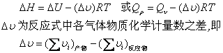 式中p为压力; △V为反应前后体系体积的变化。说明同一反应的等压反应热与等容反应热大约相差p△V ,显然是因反应在等温等压下进行有体积变化所致。 应用时有下列几种情况: 若是气相反应,气体通常可视为理想气体,于是存在