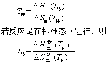常用的热力学数据均为标准态的,非标准态的转折温度可通过上式估算。为方便起见,实际常用298K时的