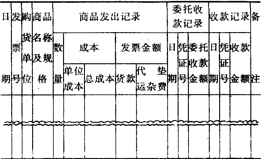 | 释义 | 发出商品登记簿 发出商品登记簿反映发出商品增减变动情况的明细记录簿。设置此簿,可以简化发出商品核算工作。一般格式如图示。发出商品登记簿采用“横线登记法”进行登记,即对每一笔已发出商品并已办理货款托收手续的业务,依据有关原始凭证在登记簿中登记“商品发出记录”和“委托收款记录”。收到货款时,根据收帐通知在同一横行登记“收款记录”,表明销售已成立。平时一般不对发出商品进行总分类核算,月末凡只有“商品发出记录”和“委托收款记录”而没有“收款记录”的,就是尚未收到货款的发出商品,应计算这部分发出商品的实际成本并借记“发出商品”帐户,下月初即用红字冲转,以恢复在“发出商品登记簿”中的记录。 发出商品登记簿