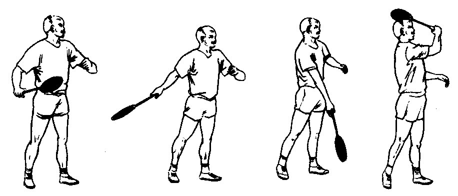 | 释义 | 发球技术 发球技术是羽毛球基本技术之一。发球质量的好坏,直接关系到比赛的主动或被动,与比赛胜负有很大关系。发球有正手和反手两种方法。根据球在空中飞行的弧线,可分为发高远球、平高球、平快球和网前球等。发球首先要选好站位。单打应站在贴近中线距前发球线约1米处;双打可稍靠前一些。正手发球时(以右手握拍为例),身体侧对球网约成45°。两脚自然开立与肩同宽,左脚在前,脚尖指向发球方向,右脚在后,身体重心落在右脚上。右手握拍向后侧举起,左手屈肘,用拇指、食指和中指轻轻地夹持球托与羽毛相接处置于胸腹前。挥拍时,手臂由后向前划弧摆动逐渐加速,身体随之向左转动,重心前移到左脚上。在右手挥拍同时,左手自然松开让球平稳下落。球拍在身体右侧前方腰以下部位击球,将球击到斜对面的接发球区内。(见图2—3—26)反手发球时,站在靠近前发球线的中线处,多数是右脚在前,上体稍前倾,重心落在前脚上。用左手大拇指和食指捏住球的靠近身体一侧的羽毛,并将球横拿使球托部位指向身体右侧腰部以下。右手反手握拍,拍面稍后倾,置于腰腹前。击球时,利用手臂带动手腕和手指发力向前推送球,将球击到斜对面的接发球区内。