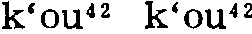 口口kou3 kou3-2(名)❶口儿;口子:这瓶子~是破的。|手遭割了一条~。 ❷刀、剑、剪刀等的刃:幸好是菜刀背背,万一是菜刀~的话,哎哟! (川文79. 2.25) |这把剪刀~都剪缺了,不磨咋个用? 口口一0342①名口子。西南官话。四川成都〖 〗。贵州沿河〖 〗。衣服扯了个~‖手指被划了个~。②名刀、剑、剪刀等的刃。西南官话。四川成都〖 〗。这把剪刀~都剪缺了,不磨咋个用?③名出入通过的地方。西南官话。云南昆明:他家住在街~上。④量点儿。晋语。山西岚县〖 〗。一~一点儿。   口口kǒu kǒu〈名〉 ❶每一句话。〔宋〕文天祥《出真州》:“某见相公一个恁么人,口口是忠臣,某如何敢杀相公?”〈形〉 ❷连声地,口口声声地。〔清〕曹雪芹《红楼梦》:“宝玉接来一瞧,那玉有三寸方圆,形似甜瓜,色有红晕,甚是精致。宝玉口口称赞。” 口口kǒu kǒu口口声声:宝玉接来一瞧,那玉有三寸方圆,形似甜瓜,色有红晕,甚是精致。宝玉~称赞。(一○九·1383) 口口见“口弦”。 |