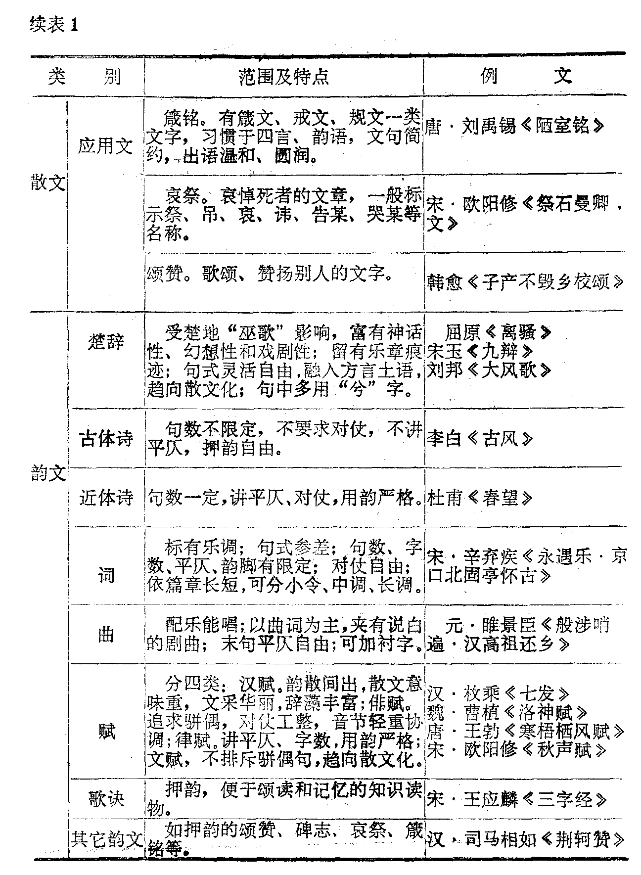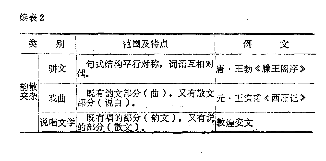 中国古代文体分类表