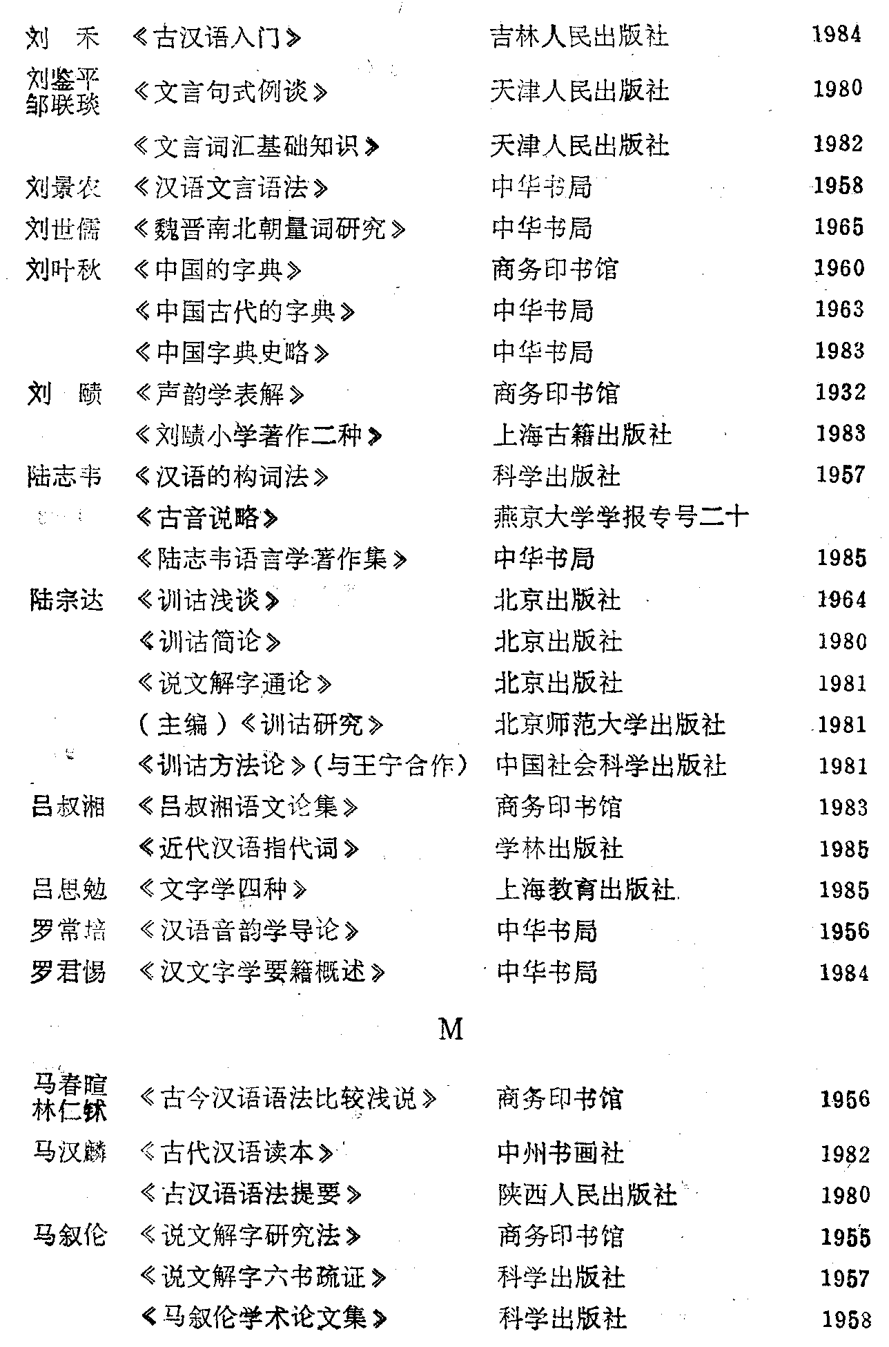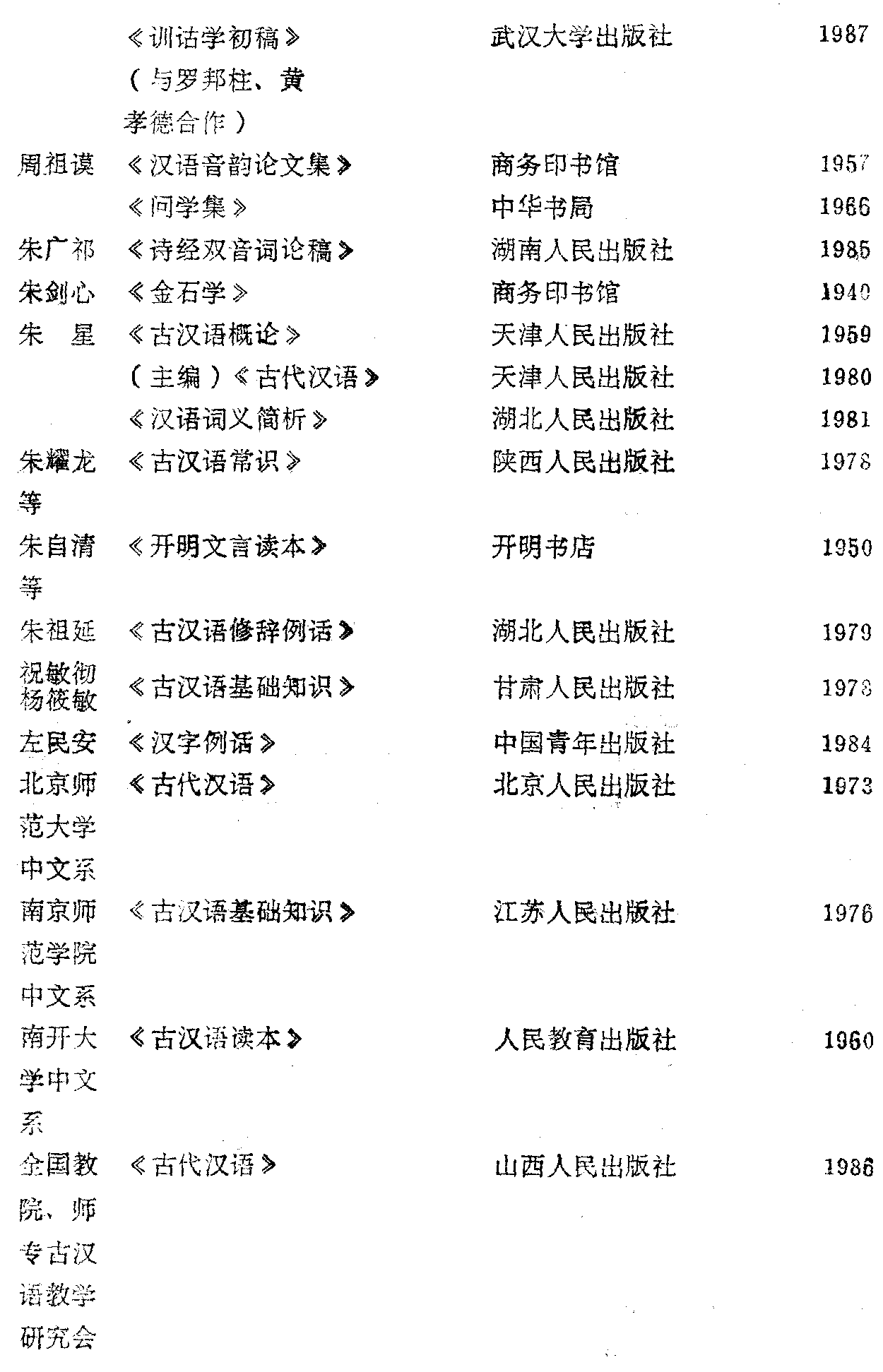 古汉语知识辞典︱中国现代古汉语学者及其主要著作简表 中国现代古汉语学者及其主要著作简表