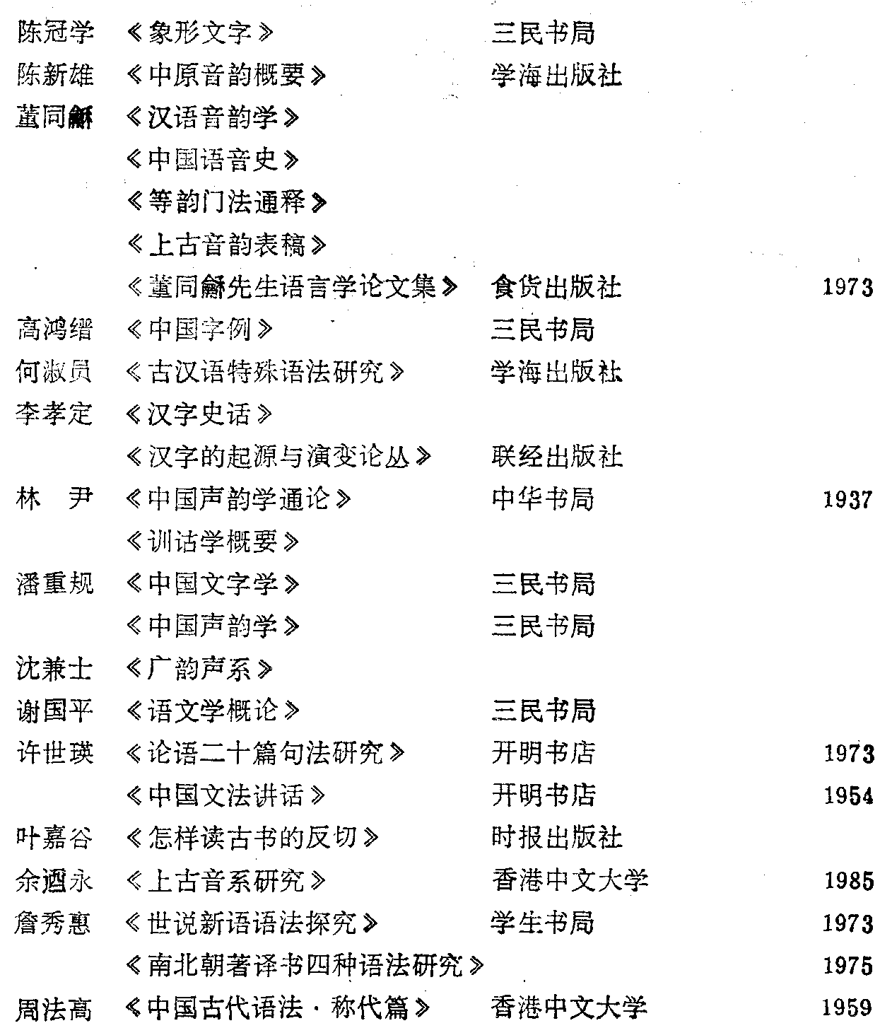 附:台湾、香港学者关于古汉语研究的专著举隅