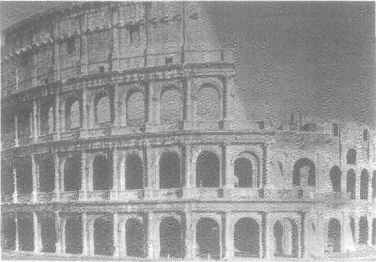 古罗马时期为看血腥的奴隶与奴隶、奴隶与兽之间的角斗而建造的剧场。现存规模最大的角斗场是公元70年—80年建筑的罗马大角斗场,剧场为椭圆形平面,周长530m,长轴188m,短轴156m,高达48.5m,中心角斗区也为椭圆形,长轴为86m,短轴54m,围绕角斗区有60排观众席,可容纳5万人,(表演区与观众席间有5m高差,注水后可表演水战,表演区地板下为兽槛、角斗士预备室和排水管道,观众席支撑在沿椭圆放射形排列的80个重叠三层的筒形拱上,观众按底层券洞的编号对号进入,沿拱内楼梯到达预定的座位区,人流独立集散互不干扰,观众席分为上下六区,下部三区座席用白色大理石,上部三区座席为减轻对椭圆形外墙的推力而采用木结构。对建筑的功能和形式有很周密的考虑和设计,角斗场的三面以多层重叠的券柱式柱廊沿外墙排列一周的处理手法,使孤形的墙面统一而不单调,富于韵律和光影变化,具有宏伟和永恒感。