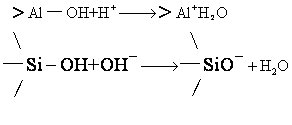 土壤中氧化硅电荷零点在pH2左右,因此在土壤中氧化硅和层状硅酸盐边缘断键裸露的Si—OH基一般产生可变负电荷。四面体硅离解在pH2开始,在pH4以上迅速增加。 水铝英石具有两性特征,同时带有可变正电荷和可变负电荷,其电荷产生机理为 高岭石的边面也有两性行为,产生可变电荷的情况如下: