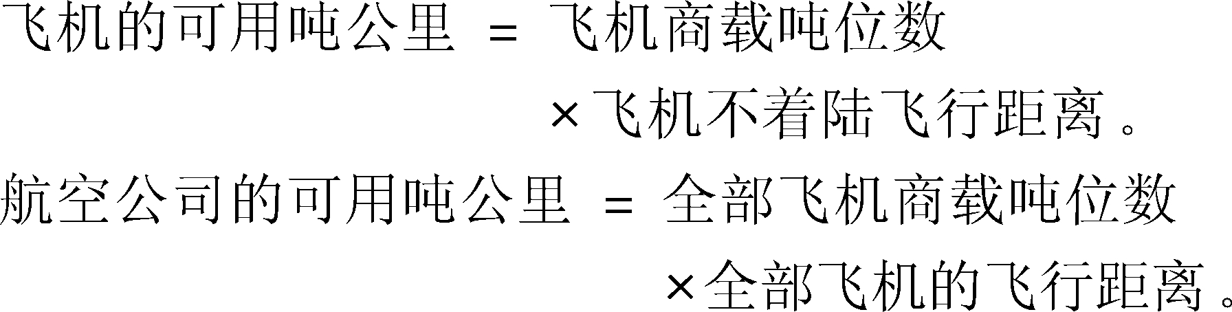 计算航空运力的单位。衡量航空公司总运力的尺度。可用吨公里越大,航空公司的总运力就越大。计算公式为: