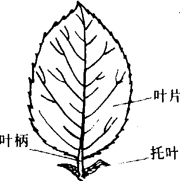 对生叶序 每一茎节上成对着生2叶,如大叶黄杨、薄荷。 轮生叶序 每一节上环生3叶,如夹竹桃、桔梗。有的植物如向日葵,在同一植株上可发生两种叶序,下部为对生,上部却为互生。 叶的结构 叶起生于茎,其叶柄与幼茎的结构甚为相似。叶分为表皮、基本组织和维管组织三部分(图3)。