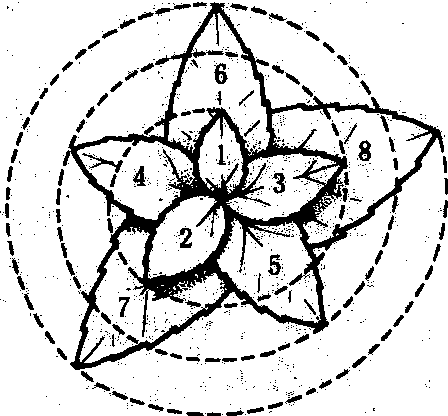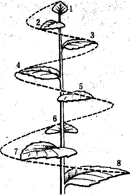 图 2 主要果树的叶 叶在枝条上的着生次序叫叶序, 果树叶序主要有互生、对生二种类型。在枝上每一节只生一叶的为互生叶序,互生叶序的叶在枝上呈螺旋排列,叶序有1/2、1/3、2/5、3/8、5/13等方式。多数果树互生叶序为2/5式, 即相邻两叶在茎周相距2/5周,即144°处着生。葡萄和部分栗叶则为1/2式,相邻两叶相距1/2周,即180°处着生。石榴、番石榴等是对生叶序, 枝上每一节有两叶相互对生,而且相邻两节的对生叶常成垂直方向,使叶片互不遮蔽。 叶的作用 叶的主要功能是进行光合作用。自展叶开始, 随叶片增大光合强度也逐步增强, 到叶片停止扩大成熟时达最强, 以后, 随叶片的衰老而逐渐下降。这种现象, 在常绿果树中表现尤为突出。对于大多数落叶果树, 在叶幕完全形成时为光合作用能力的最盛期。落叶果树叶的同化能力一般高于常绿果树,不同品种叶的同化能力也不尽相同。叶的同化能力与光照水平关系密切。树冠内膛光照差, 表现叶片小、薄而色浅,同化能力弱。此外, 温度、CO2浓度、水分、矿质元素和果园位置的海拔高度对叶片的光合作用也有明显影响。 叶还具有蒸腾、呼吸、气体交换、呼吸等多种生理功能, 利用叶面气孔和角质层的吸肥特性, 进行叶面喷肥, 可及时补充果树对矿质元素的需要, 起营养果树或防治缺素症的作用。吸收强度和速率与叶龄、肥料成分和溶液浓度有关。常绿果树的叶还是营养的贮藏器官。 叶内矿质元素的含量和比例可以反映树体的矿质营养水平。分析叶内的矿质营养水平, 可作为施肥的依据(见营养诊断)。 叶的形成 叶在芽内或正在生长的新梢顶端(茎尖)开始分化。当芽形成时,在芽内茎尖生长锥周围的一定部位, 分生组织细胞迅速分裂形成突起, 分化为叶原基。叶原基形成后, 陆续经过顶端生长、边缘生长, 其先端部分发育为叶片和叶柄, 基部发育为叶基和托叶。在芽萌发以前, 雏叶的各部分已经形成, 以不同方式卷迭在芽内。随着芽的开放, 雏叶通过叶基的居间生长进一步扩大伸展, 逐渐生长成为成熟叶。 芽内不同部位的叶原基,分化和发育的时间不同,基部的叶原基在冬季休眠前形成并不断生长。休眠时,芽内停止分化。越冬后,萌芽前, 营养条件较好的芽,可继续分化一定数量的叶原基。以上叶原基的分化均在芽内进行, 称为芽内分化; 部分着生位置优越、营养充足和生长势强的芽, 萌发后先端生长点仍能继续分化新的叶原基, 增加节数。萌芽后的叶原基分化在芽外进行, 称为芽外分化。 叶片展开后, 前期生长快, 称为迅速生长期, 后期生长慢, 称为缓慢生长期。单个叶片自展叶到叶面停止增长所经历的时间, 因树种、品种、枝梢类型以及叶在枝梢上的位置不同而异。在长梢上, 一般中下部叶片生长期较长, 而上部叶片生长期较短; 在短梢上, 除基部小叶生长期较短外, 其他叶片大致相近。 不同果树的叶片大小、形状等差别, 除受遗传因素影响外,常决定于叶原基各部分的细胞分裂数量、速度、细胞分布以及各细胞的伸展程度和环境因素等。同一品种单叶的大小, 一般取决于叶的生长日数及迅速生长期的长短和树势强弱。 叶的生活期和落叶 果树叶的寿命因树种而异。一般落叶果树,叶在春夏季形成后, 当年秋季即脱落,寿命为几个月; 常绿果树叶能生活一年到数年, 老叶脱落多在春夏新叶发生之后。落叶时, 叶细胞的营养物质逐渐分解, 由韧皮部运向枝干内贮藏; 叶内核糖核酸和蛋白质减少, 叶绿素解体, 叶黄素显现而使叶片发黄,有的果树还产生花青素,使叶片转为红色。与此同时, 在叶柄处形成离层, 在外力的作用下, 叶片脱落。 早期落叶和延迟落叶, 都对果树不利。早期落叶不利花芽分化, 降低果品质量和产量, 甚至引起二次开花; 落叶果树秋季不能按时落叶, 不利于枝条的成熟, 冬季易遭冻害。 叶幕 叶在树冠内集中分布区域的总称。叶幕形状有层形叶幕、篱形叶幕、开心形叶幕等。叶幕的形状、厚度、层次和密度组成叶幕结构。自然形树冠的叶幕结构主要取决于品种与砧木的生长特性和年龄,也受整形修剪方式、土壤气候条件以及栽培管理水平等因素的影响。叶幕结构的变化可导致叶面积指数和叶净同化率的变化。在果树生产中, 常采取整形修剪等措施来调整叶幕的层次和密度, 使单位面积或树冠容积内形成最适数量的叶片, 以充分利用光能, 从而实现优质、高产和稳产。冠形高大, 叶幕层数多、叶幕厚的果树, 冠内光照差, 叶幕中无效叶区的比例增加, 不利于果实产量和质量的提高。 落叶果树的叶幕,在年周期中有明显的季节变化,因树种、品种、环境条件和栽培技术不同, 叶幕形成的速度与强度也不同。一般抽生长枝多的树种、品种或幼龄树, 强旺树, 长枝比例大, 叶幕形成慢, 叶面积指数高峰出现晚。桃树以长枝为主, 树冠叶幕在长枝旺盛生长期之后增长最快; 梨、苹果成年树以短枝为主,树冠叶幕在短枝停止期增长最快。叶幕量大,形成期早, 有利碳素营养物质的积累。落叶果树理想的叶幕生长动态是前期叶面积增大较快, 中期保持合适的叶面积, 后期叶面积维持时间长。 叶面积指数 是单位面积内栽植株数的总叶面积(A)与单位面积(L)的比值, 或单株的叶面积与营养面积的比值, 或称叶面积系数。能比较正确地说明单位面积或单株的叶面积数和生产效能。测定叶面积指数的