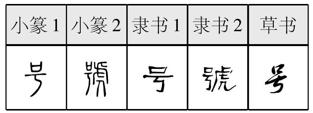 ❸ 啼饥号寒 另见hào。 号(háo)“ ,痛声也。从口在丂上。凡号之属皆从号。”(胡到切) 徐锴《系传》:“丂者,痛声不舒扬也。”段玉裁注:“号,啼也。凡啼號字古作号。口部曰:‘啼,号也。’今字则號行而号废矣。(从口在丂上)丂者气舒而碍,虽碍而必张口出其声,故口在丂上,号咷之象也。”今见最早的“号”字系战国早期楚系文字,如曾侯乙编钟中即出现 字。又银雀山汉墓竹简《尉缭子》486简:“发号出令。”[1]不过传世典籍一般写作“號”。 号部下只有一个属字“號”,云:“呼也。从号,从虎。”今“號”简化为“号”。 号號(5画) ❶háo ❷hào