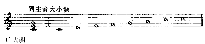 主音相同的大小调。也称同名大小调或同名调。如以C为主音的C大调与以c为主音的c小调即称同主音大小调: