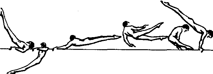 双杠项目高难度动作之一。在1993年制定的《国际体操男子评分规则》难度表中将该动作定为D组难度。要充分的沉肩振浪完成高质量的后摆上,当身体后摆过杠平面后稍屈髋制动腿,同时两臂猛力压杠急振上体并推手离杠身体腾起,在腾起过程中完成转体180°后切,即边转边分腿并迅速向前屈体向后摆越成支撑。初学时,教练员于杠外帮助运动员加速后摆,在腾空中转体180°分腿向后摆越成支撑时教练员由杠下一手托胸另一手托腿。