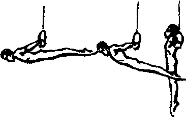 | 释义 | 后水平悬垂压上成十字支撑 后水平悬垂压上成十字支撑系高难度动作之一。是从一个静止用力动作过渡到另一个静止用力动作的结合。因为是从低处向高处上升,所以难度较大,需要强大的肌肉力量。1993年版国际规则定为D组难度动作。从后水平悬垂转为十字支撑时,首先用力将上体压起,当肩部接近环的高度时两臂侧分扣肩,增加肌肉用力的范围,动员更多的肌肉参加工作,完成十字支撑。具体技术要求参见后水平悬垂和十字支撑条目。