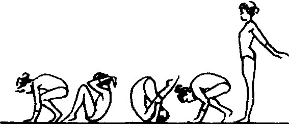 保护与帮助 保护者蹲立在练习者侧后方位置,当练习者肩、背着地时,两手扶其腰部向上提拉助其翻转。 教学重点 ❶臀、腰、背、头依次着垫滚动。 ❷后倒时,低头、含胸,两臂翻肘早撑垫。 ☚ 双人车轮前滚翻 跪跳起 ☛ |