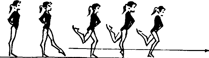 基本步法之一。跑步时两腿交替完成向后小踢腿动作。动作要领 跑动时摆动腿屈膝后踢,脚背绷直,接着向前伸用前脚掌落地。两腿交替后踢, 上体稍前倾,头和臂协调配合。