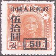 “中华邮政中央版‘限东北贴用’孙中山像邮票”加字改值