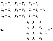 当a,b,c成右手系时,行列式的值为正. 当a,b,c成左手系时,行列式的值为负. 三向量共面的充要条件是 ![]() ❼ 空间四点A (x1,y1,z1),B (x2,y2,z2),C(x3,y3,z3),D (x4,y4,z4)共面的充要条件是