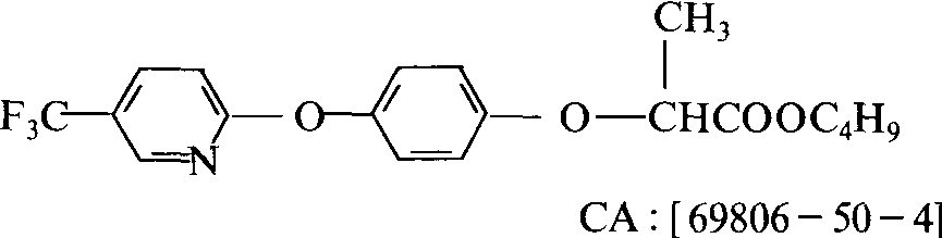 吡氟禾草灵fluazifop-butyl双子叶作物中对禾本科杂草有特效的选择性茎叶处理除草剂。又名氟草除、氟吡醚、稳杀得、SL-236、PP009。化学结构式:  1978年英国卜内门公司和日本石原产业公司同期开发。 性能 原药无色或浅黄色油状液体,沸点170℃,水中的溶解度为2毫克/升,可与甲醇、丙酮、环己酮、已烷、二甲苯、二氯甲烷互溶。急性口服LD50:大鼠为3328毫克/千克,小鼠为1490(雄)、1770(雌)毫克/千克。对野鸭的LD50为17280毫克/千克但对虹鳟鱼的LC50为1.5毫克/升(96小时)。无致畸、致癌作用。本剂可被禾本科植物的茎叶吸收,由韧皮部传导至根的顶端、节间分生组织,抑制细胞分裂,阻碍能量传递,破坏光合作用,使杂草逐渐枯死。禾本科杂草在施药后48小时内即停止生长,4~7天出现分蘖节及生长点变褐,心叶及其他叶片先后相继失绿、变黄,逐渐枯死。对未抽穗的大禾本科杂草难以杀死,但表现为地上部矮小、根短、根尖发黑且不能下伸,结籽量少。土壤中残效期1~2个月,移动性1 ~2厘米。土壤处理时用量要比茎叶处理时增加2~4倍,所以一般只作茎叶喷雾处理。 应用 可用于大豆、小豆、菜豆、花生、油菜、棉花、甜菜、苜蓿、蔬菜、果园、苗圃 、茶、桑园等阔叶作物田中,芽后防除多种一年生和多年生禾本科杂草,如稗草、马唐、狗尾草、野燕麦、看麦娘、狗牙根、芦苇、宿根高粱、白茅等。禾本科杂草2~5叶期时为施药适期。防除一年生禾本科杂草在水分适宜时每公顷用0.13~0.26千克,干旱条件下为0.26~0.35千克。防除多年生禾本科杂草每公顷用药0.35~0.67千克。喷雾对水量: 地面机械喷雾90~900升/公顷。飞机喷雾15~45升。喷药后3小时内不降雨即不影响药效。空气相对湿度大,有利于药剂发挥作用,并可降低用量。若与2,4-滴、2甲4氯混用有明显的颉颃作用,与百草枯混用,使本剂传导受阻,降低对多年生禾本科杂草的防效。所以,如施用其他除草剂时要间隔1~2星期。 |