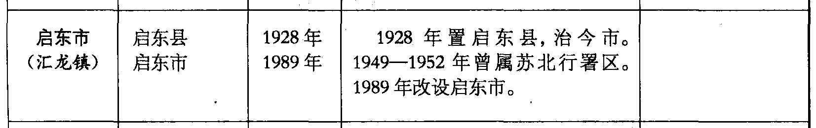 启东市(汇龙镇)启东县启东市1928年1989年1928年置启东县,治今市。1949—1952年曾属苏北行署区。1989年改设启东市。