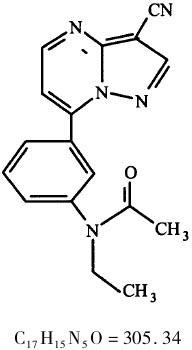 | 释义 | ☆扎来普隆 【化学名称】3’-(3-cyanopyrazolo[1,5-a]pyrimidin-7-yl)-N-ethylaacetanilide 【化学结构】