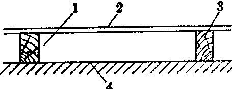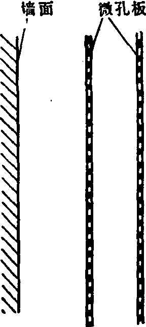 (3) 多孔板共振: 多孔板(图3)如穿孔率(ρ)小于20%,板薄而板后有一定厚度的空气层时,其作用就相当于许多个单腔共振结构。多孔板的共振频率(f0)为: